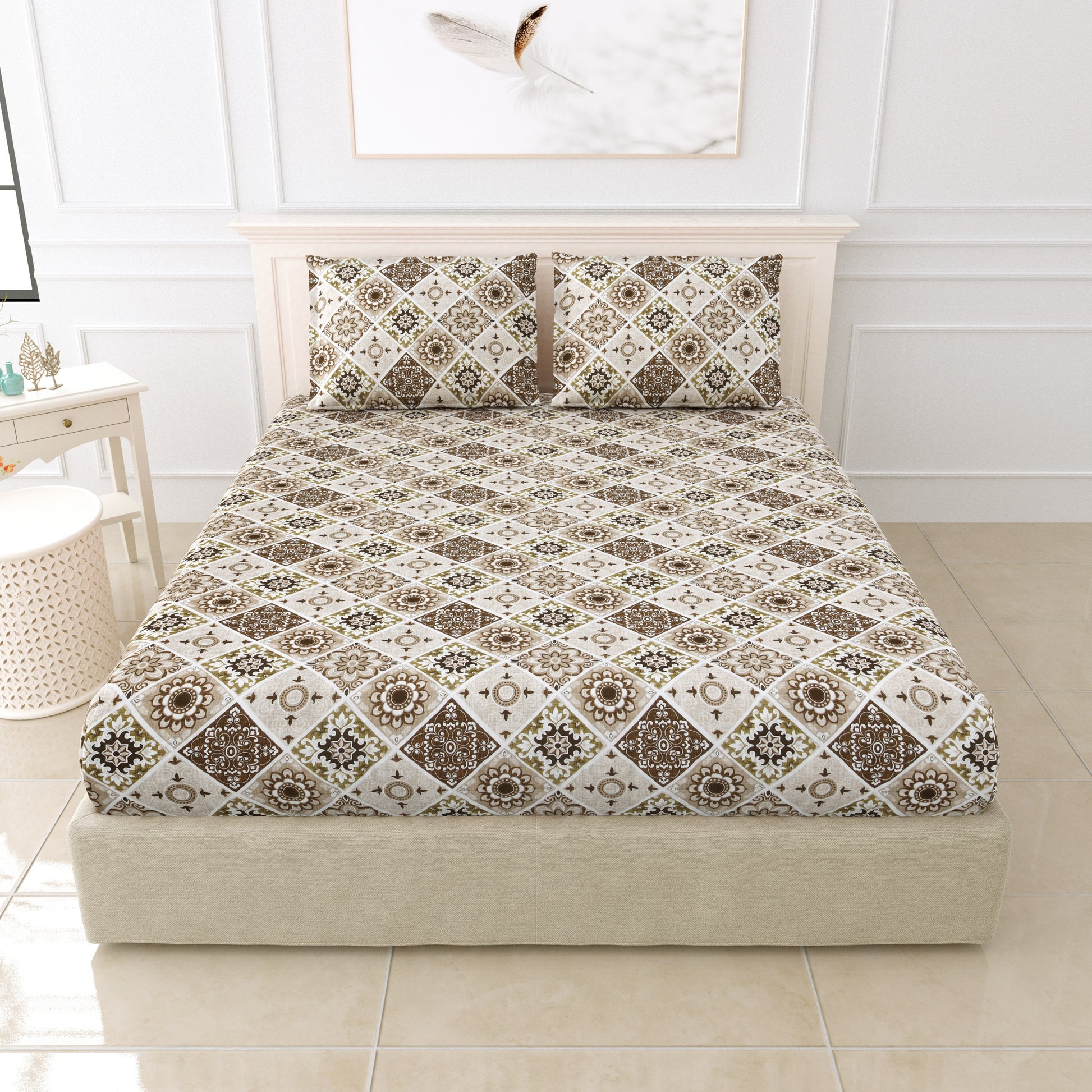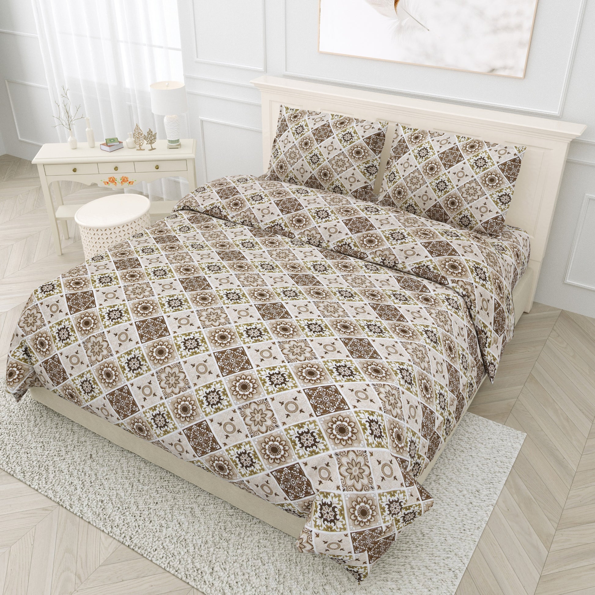 Pillowcases: Free pair of matching geometric-mandala pillowcases included.