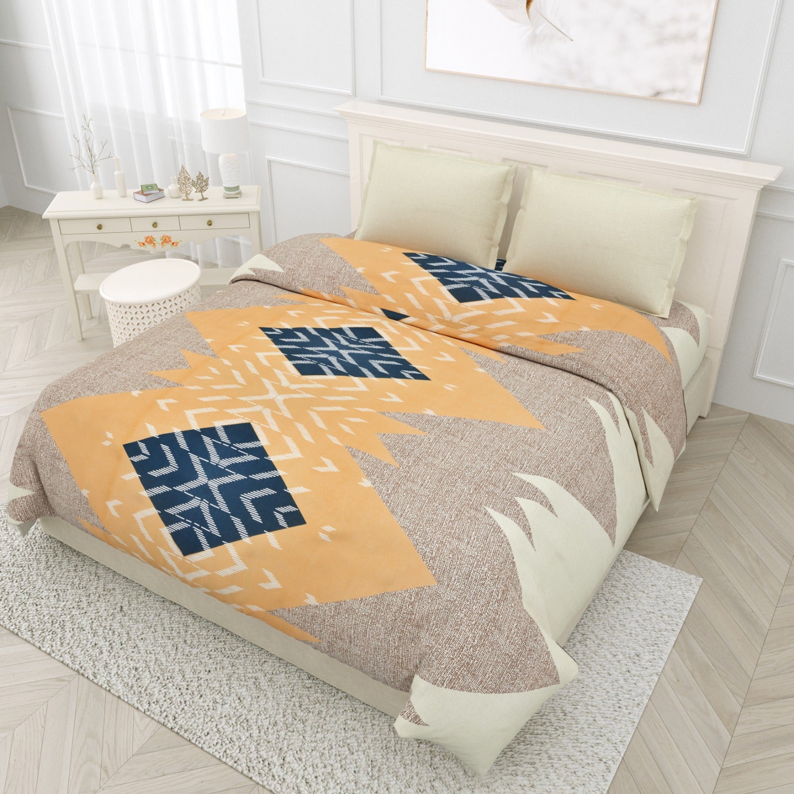 Experience the essence of summer nights with our 'Midnight Blooms' bedsheet print. Delicate white lilies dance gracefully against a deep, luxurious dark blue backdrop, evoking a sense of tranquility and opulence, perfect for embracing the warmth of the upcoming season.